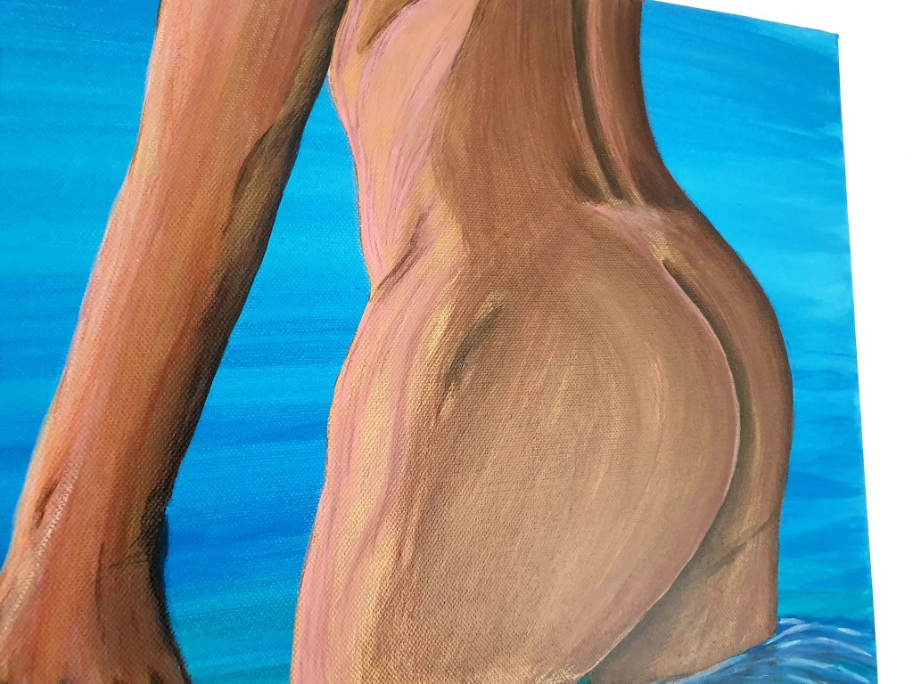 Was ist schöner als nackt im weissem Sand und türkisem Meerwasser zu liegen? Dieses äußerst sinnliche Bild stellt genau dieses Gefühl dar.