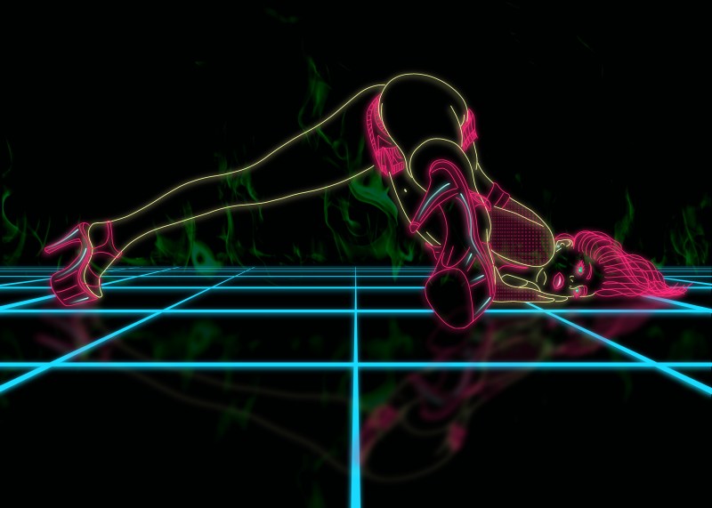 Ihr Lieblingsstil ist minimalistisch und abstrakt mit leuchtenden Farben auf schwarzem Hintergrund. Die Motive sind sehr kontrastreich.